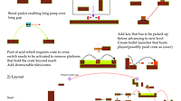 Date: 12.-13.3.2022 Activity: Extending onepage level design Time invested: 2 h Outcome: Extended onepage level design which can be used to create a level using 2D Gamekit. New ideas were added, some...